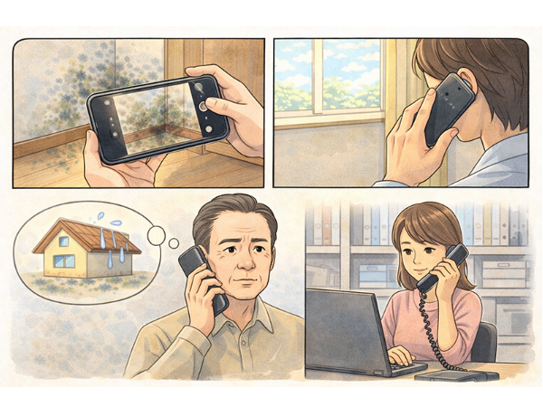 『賃貸物件でカビが発生した場合、自分で業者を手配する前に、必ず大家さんや管理会社に連絡』してください。