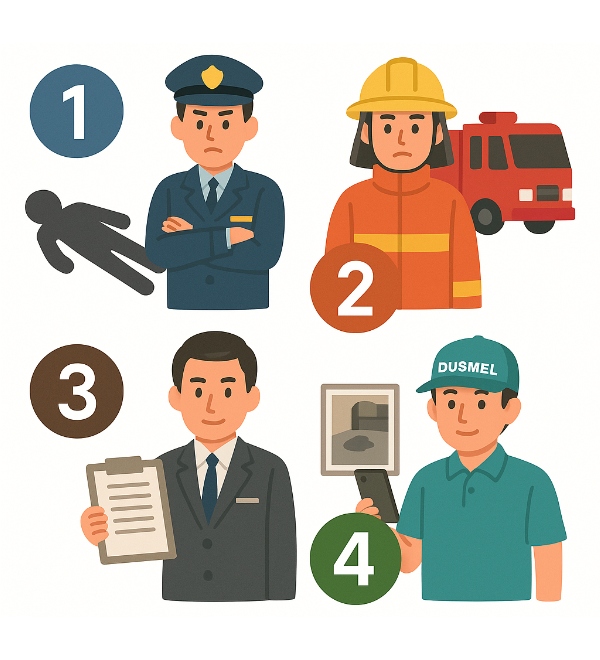 フローチャートを用意しておくことで、家族や管理会社、警備員など立場の違う人でも共通認識で動けるため、無駄な二次汚染や感情的トラブルを最小限に抑えられます。
