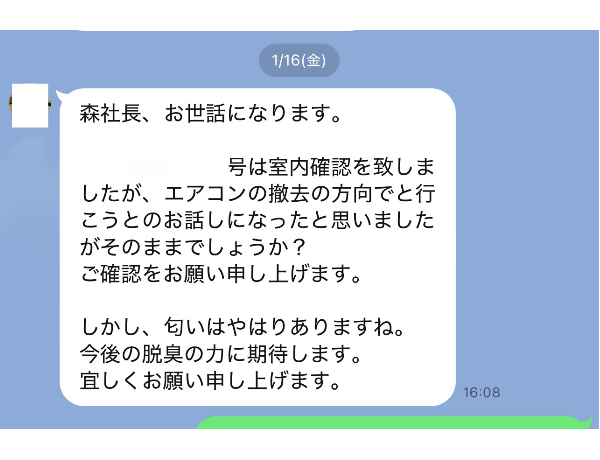 一次作業後、不動産管理会社様よりいただいたご連絡